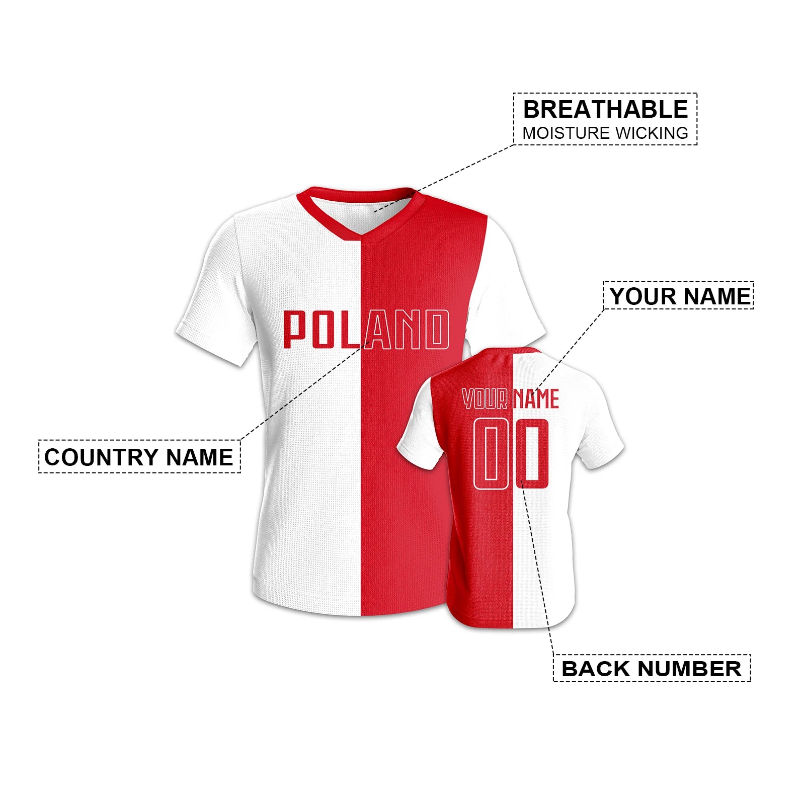 Custom Poland Football Jersey Personalized Name Number Quick-Dry Soccer Team Uniform Athletic Sportswear for Men Women Youth