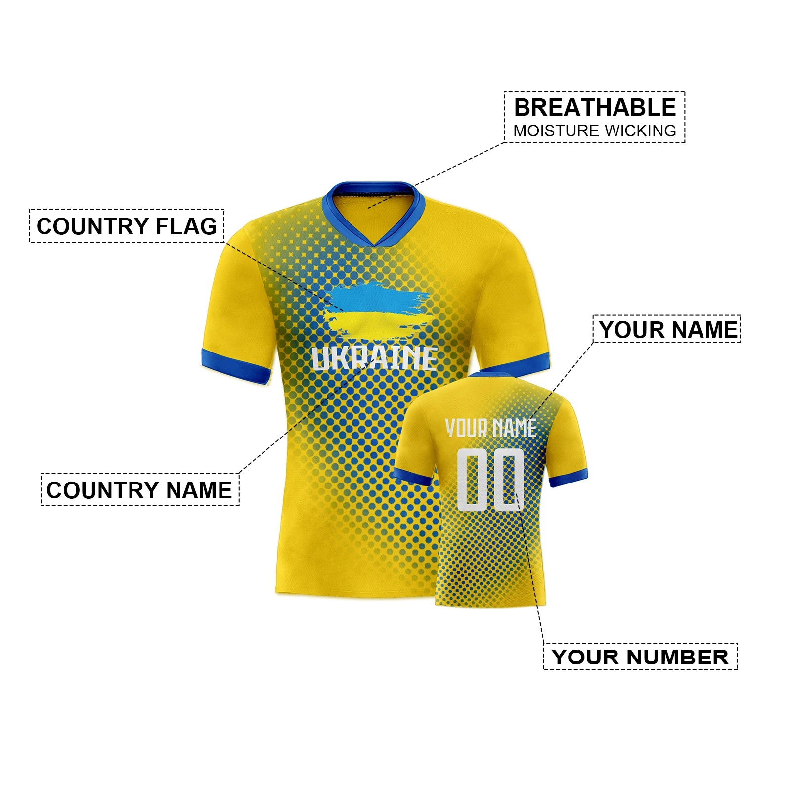 Custom Ukraine Soccer Jersey Breathable Football Training Shirt Personalized Name Number Uniform Men Women Youth Fans Gifts