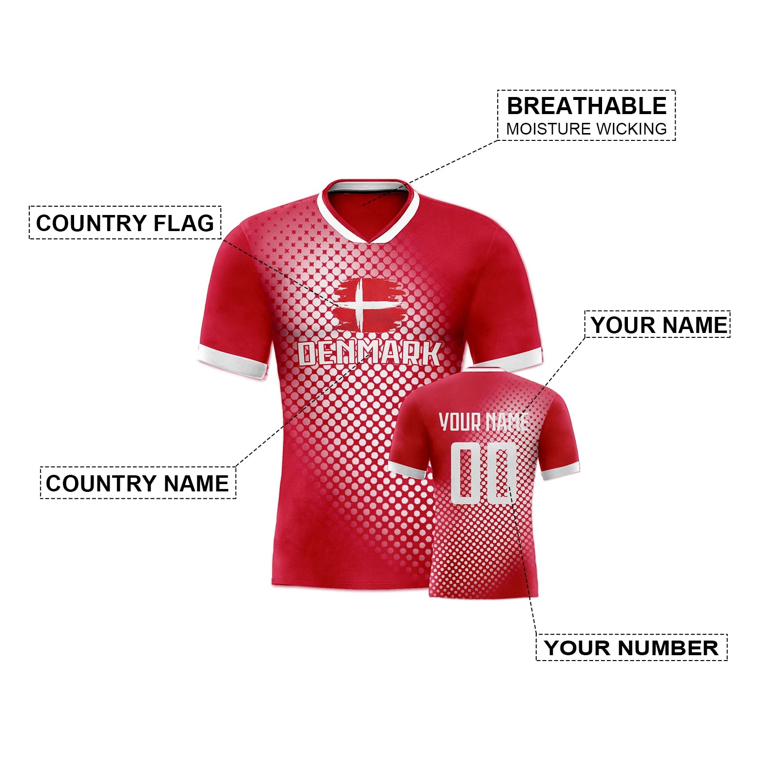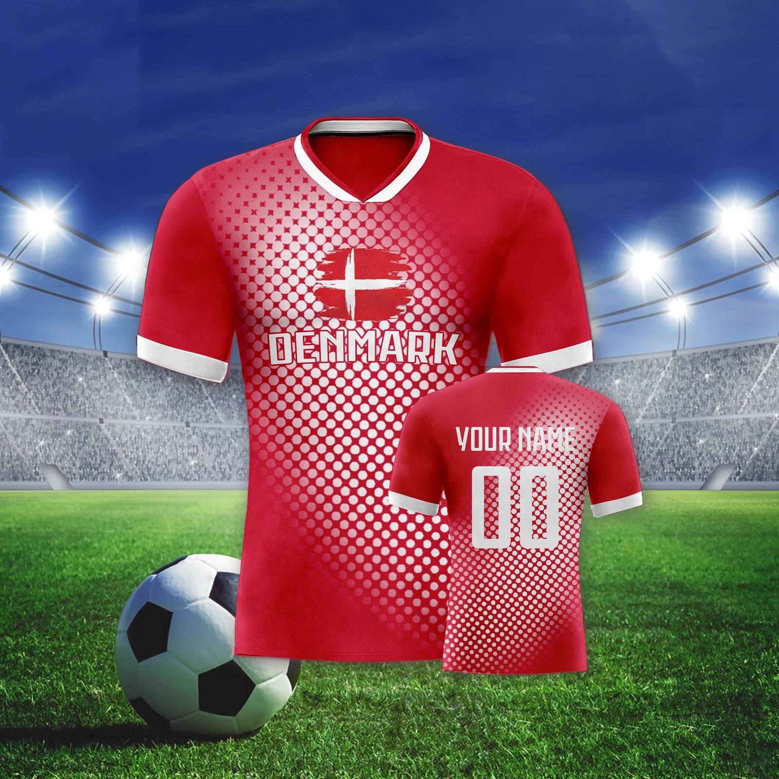 Denmark National Soccer Jersey with Name Number Flag Polka Dot Pattern Football Shirts Soccer Team Fans Men Women Youth Gifts