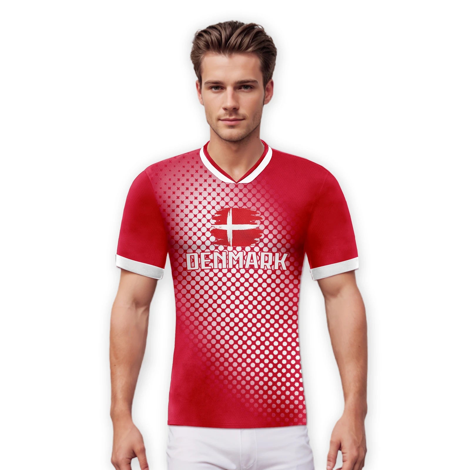 Denmark National Soccer Jersey with Name Number Flag Polka Dot Pattern Football Shirts Soccer Team Fans Men Women Youth Gifts