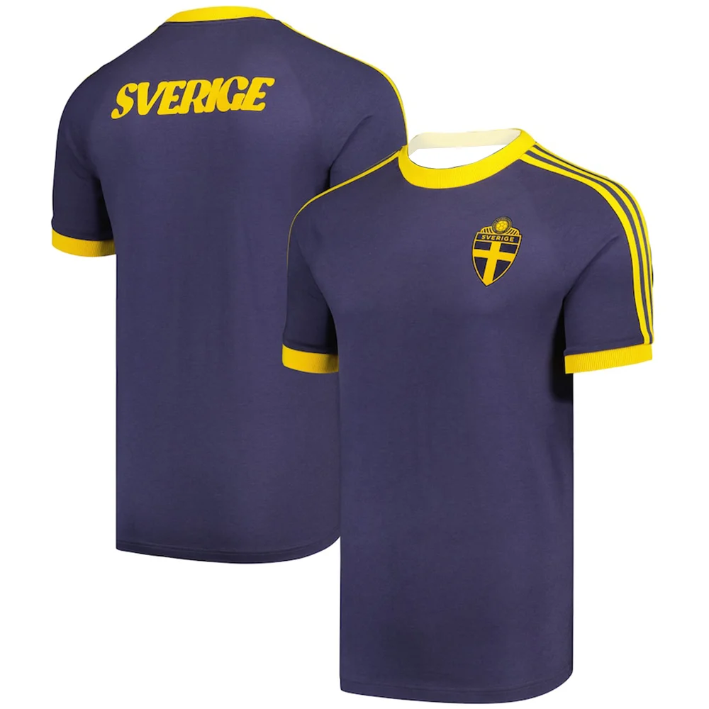 Fashionable And Retro Swedish Football Jersey Striped And Printed T-shirt Quick-Drying Round Neck Sports Training Short Sleeve