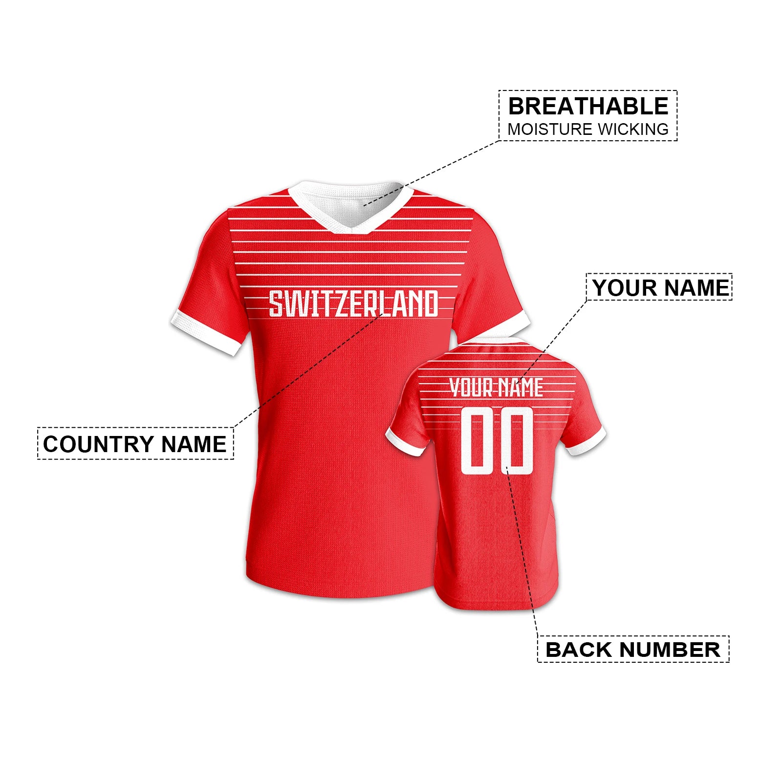 Personalized Switzerland Football Jersey Youth Soccer Uniform Custom Name Number Breathable Quick-Dry Athletic Clothes Unisex